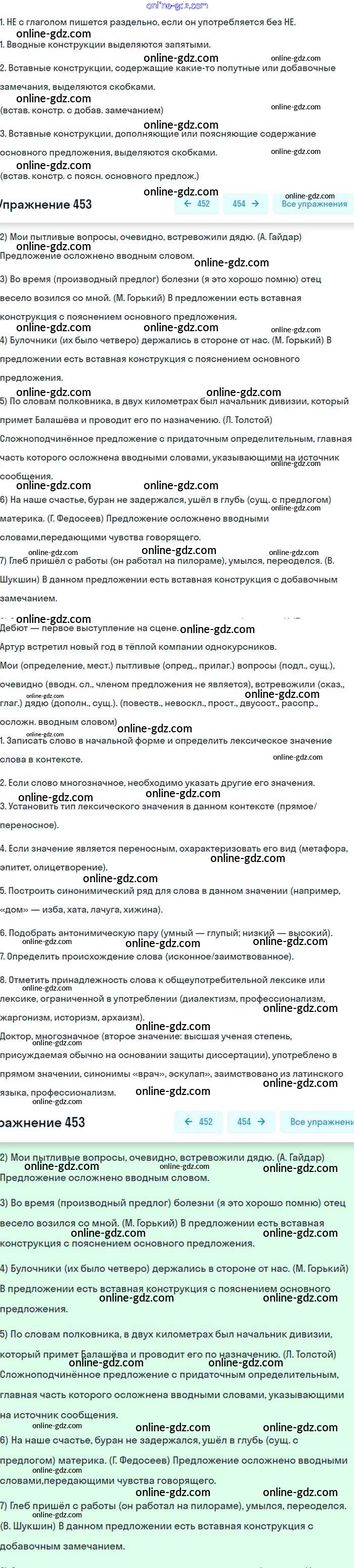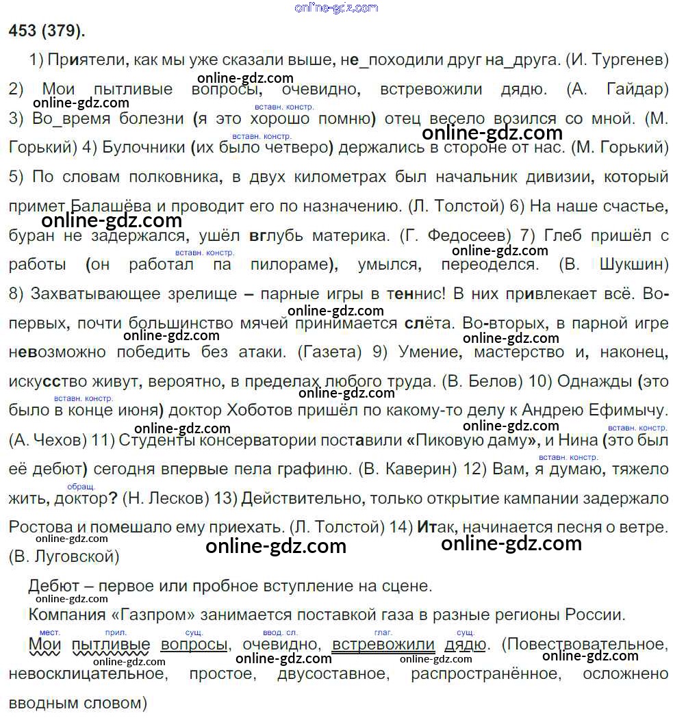 Готовые домашние задания по Русскому языку за 8 класс Учебник Бархударов, Крючков 2018 - Упражнения 453