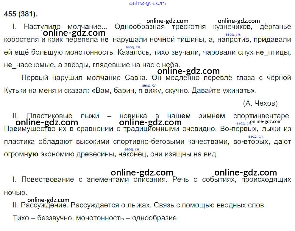 Готовые домашние задания по Русскому языку за 8 класс Учебник Бархударов, Крючков 2018 - Упражнения 455