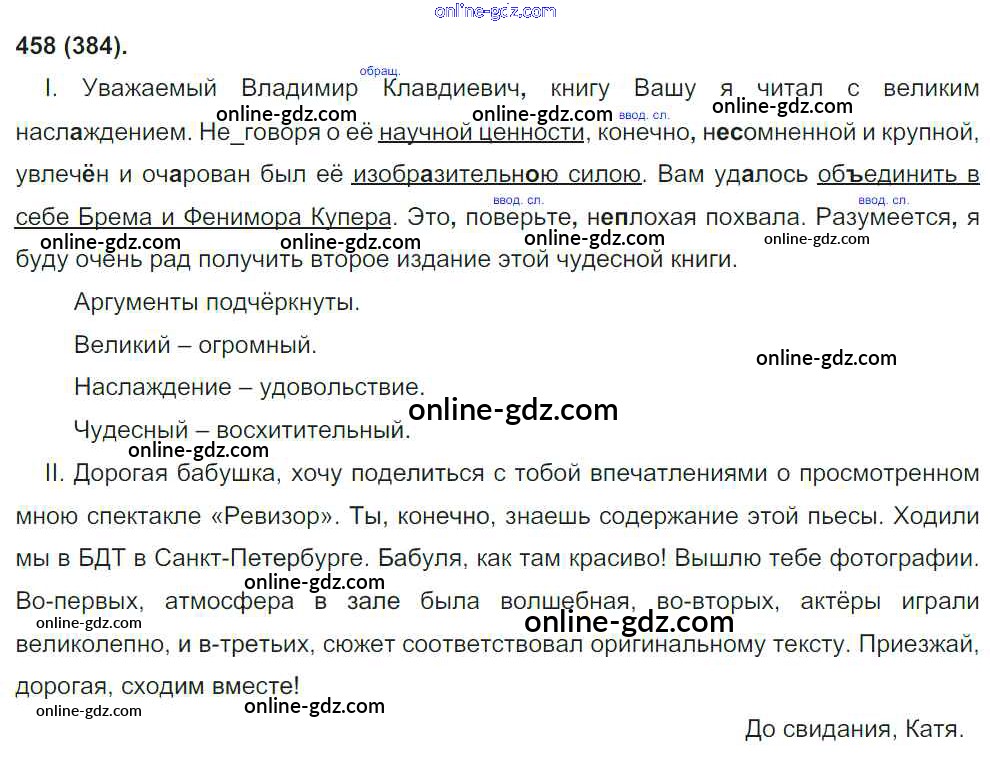 Готовые домашние задания по Русскому языку за 8 класс Учебник Бархударов, Крючков 2018 - Упражнения 458