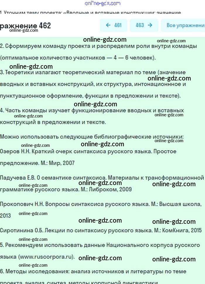 Готовые домашние задания по Русскому языку за 8 класс Учебник Бархударов, Крючков 2018 - Упражнения 462