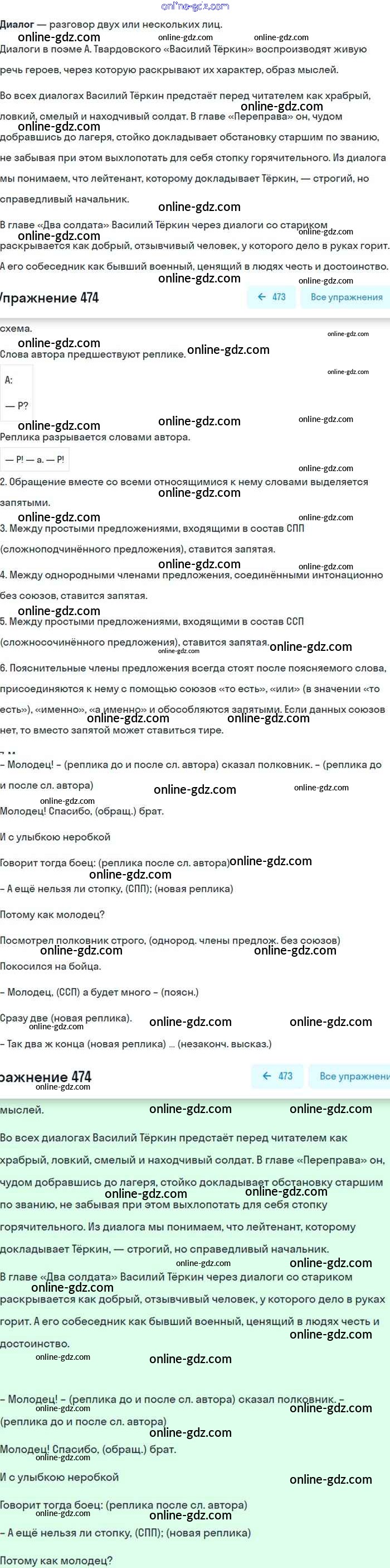 Готовые домашние задания по Русскому языку за 8 класс Учебник Бархударов, Крючков 2018 - Упражнения 474