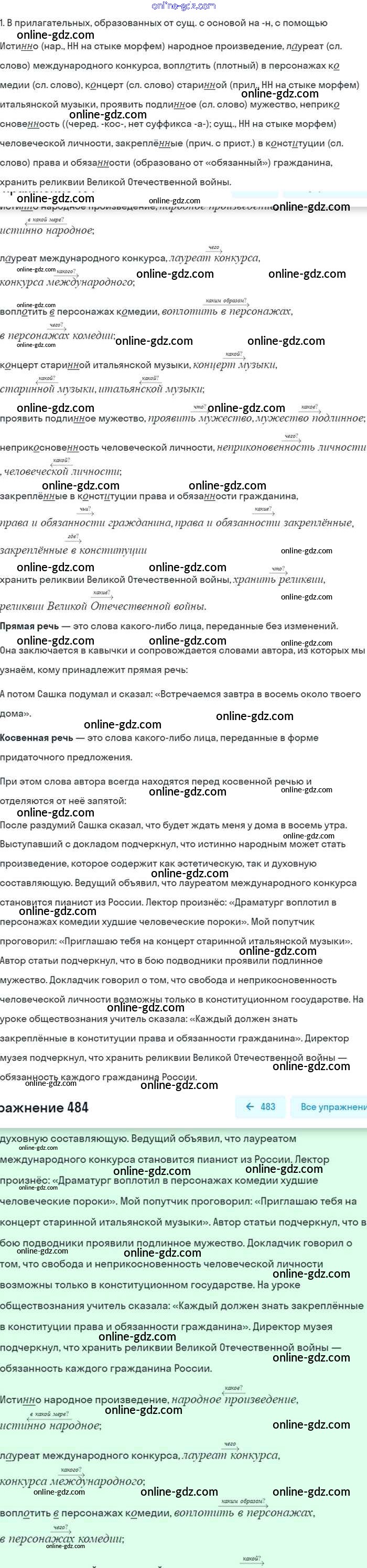 Готовые домашние задания по Русскому языку за 8 класс Учебник Бархударов, Крючков 2018 - Упражнения 484