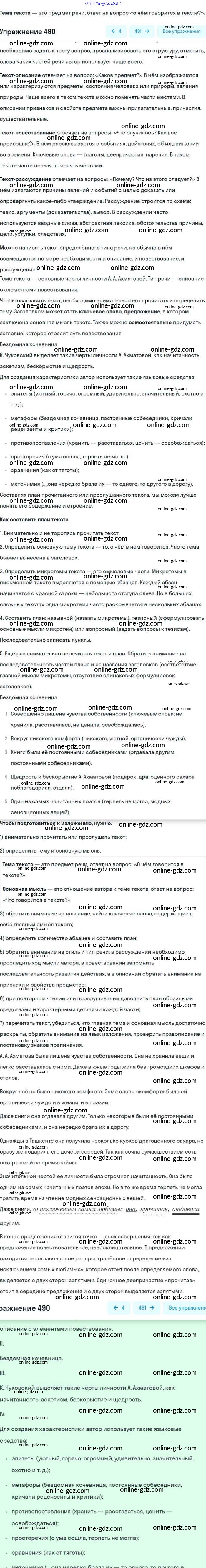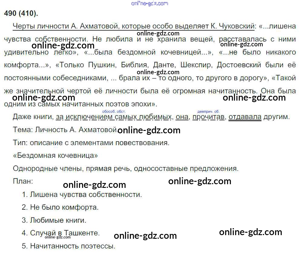 Готовые домашние задания по Русскому языку за 8 класс Учебник Бархударов, Крючков 2018 - Упражнения 490