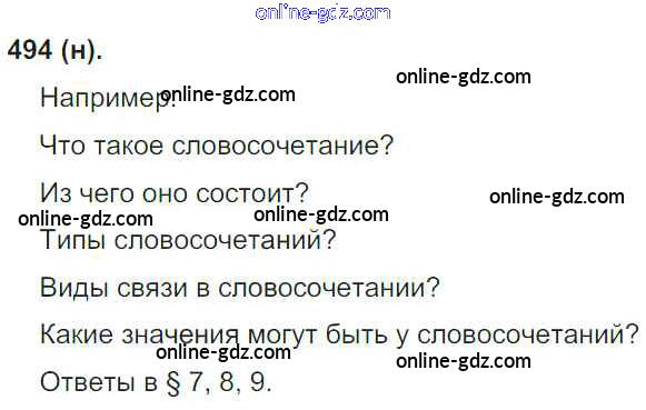 Готовые домашние задания по Русскому языку за 8 класс Учебник Бархударов, Крючков 2018 - Упражнения 494