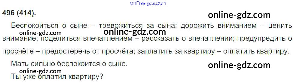 Готовые домашние задания по Русскому языку за 8 класс Учебник Бархударов, Крючков 2018 - Упражнения 496