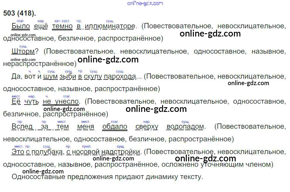 Готовые домашние задания по Русскому языку за 8 класс Учебник Бархударов, Крючков 2018 - Упражнения 503