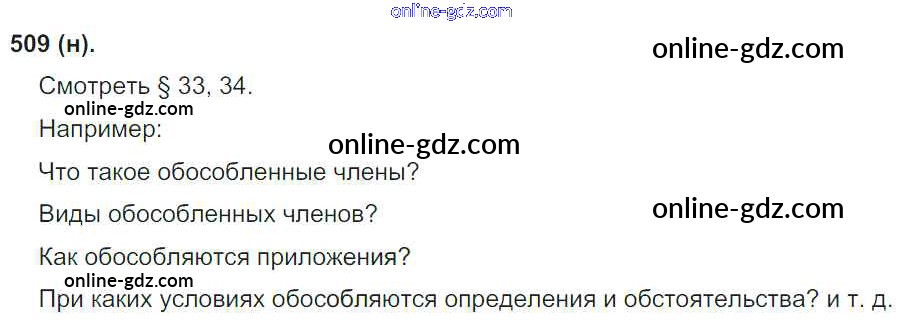 Готовые домашние задания по Русскому языку за 8 класс Учебник Бархударов, Крючков 2018 - Упражнения 509
