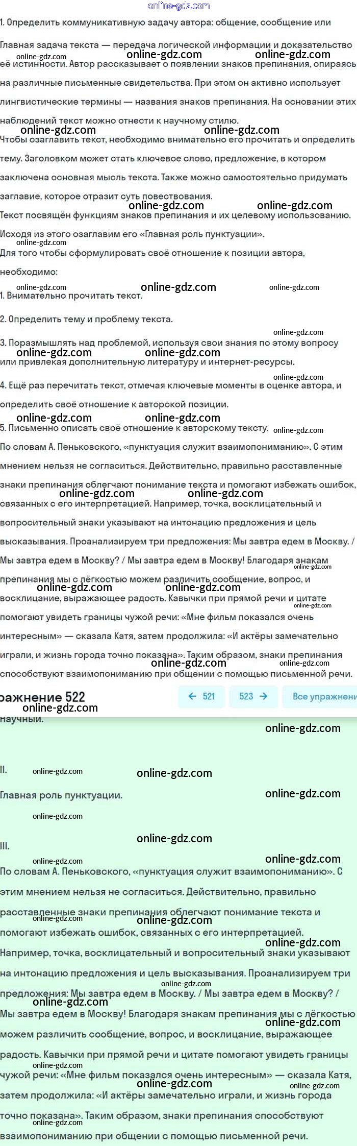 Готовые домашние задания по Русскому языку за 8 класс Учебник Бархударов, Крючков 2018 - Упражнения 522