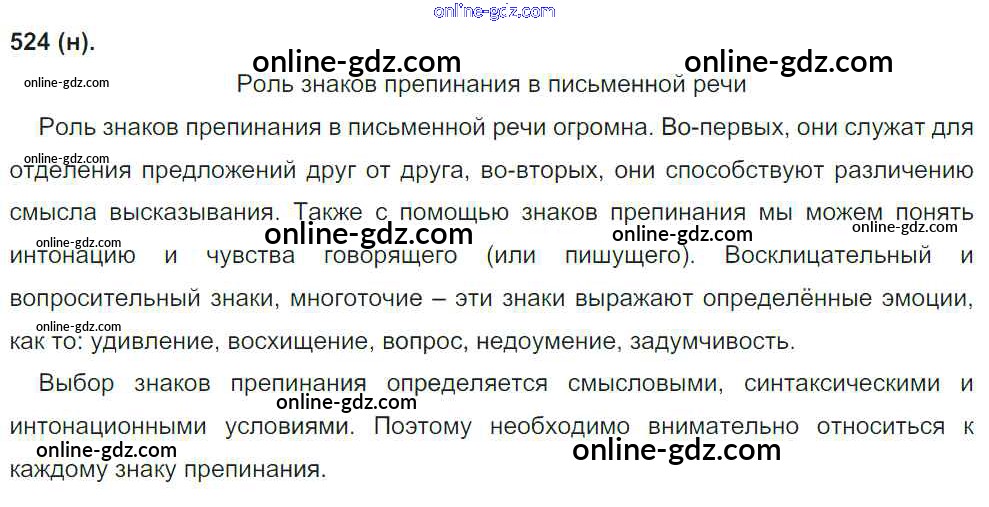 Готовые домашние задания по Русскому языку за 8 класс Учебник Бархударов, Крючков 2018 - Упражнения 524