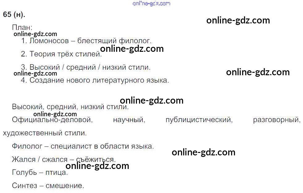 Готовые домашние задания по Русскому языку за 8 класс Учебник Бархударов, Крючков 2018 - Упражнения 65