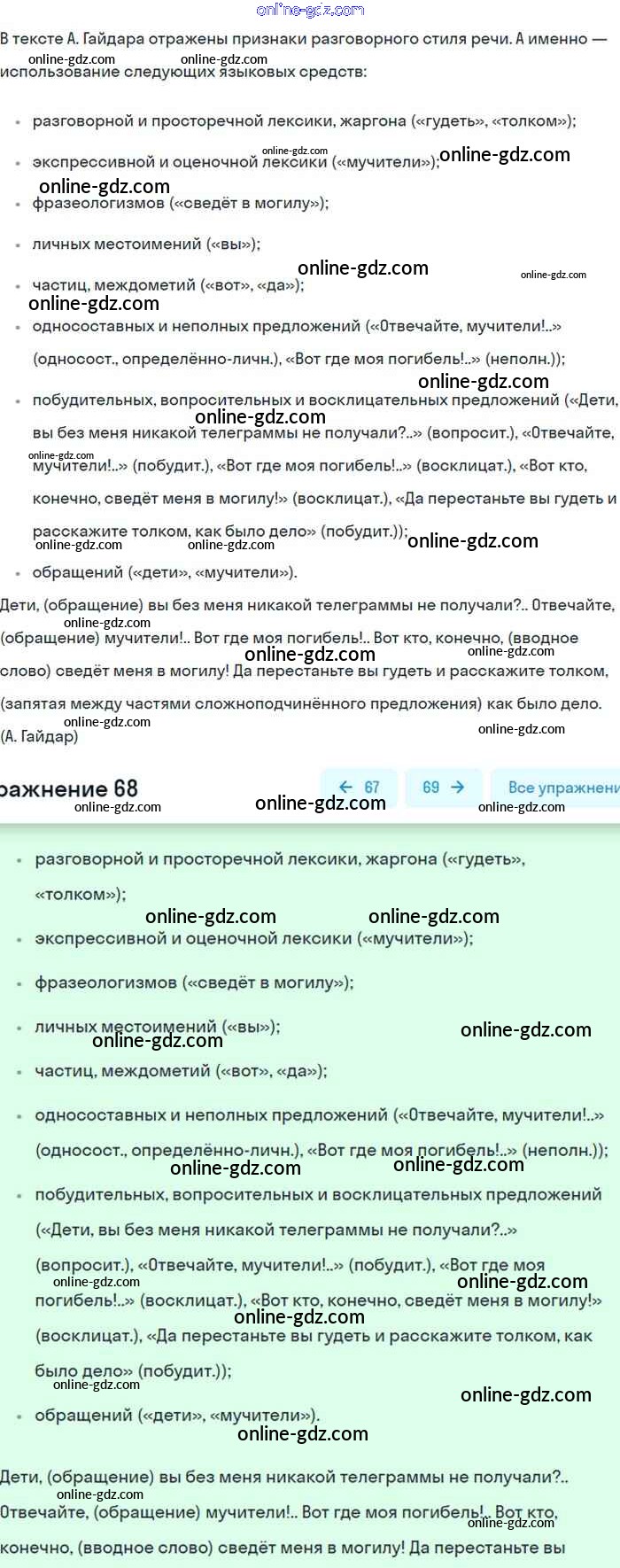 Готовые домашние задания по Русскому языку за 8 класс Учебник Бархударов, Крючков 2018 - Упражнения 68