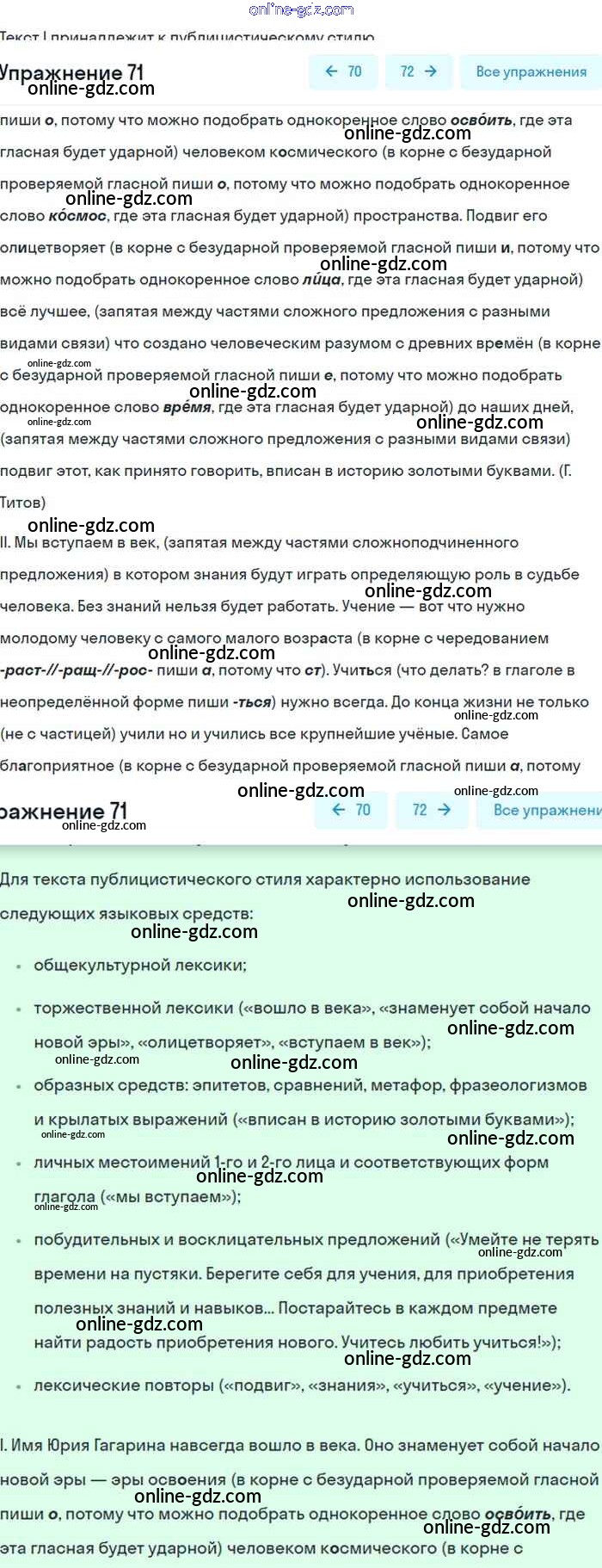 Готовые домашние задания по Русскому языку за 8 класс Учебник Бархударов, Крючков 2018 - Упражнения 71