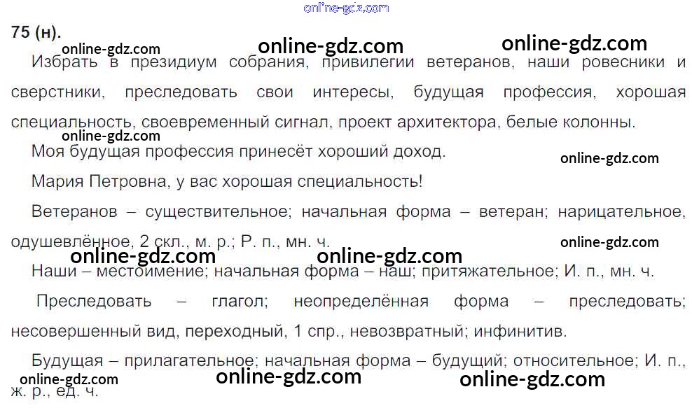 Готовые домашние задания по Русскому языку за 8 класс Учебник Бархударов, Крючков 2018 - Упражнения 75