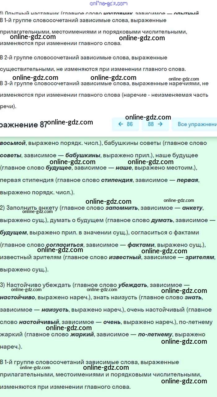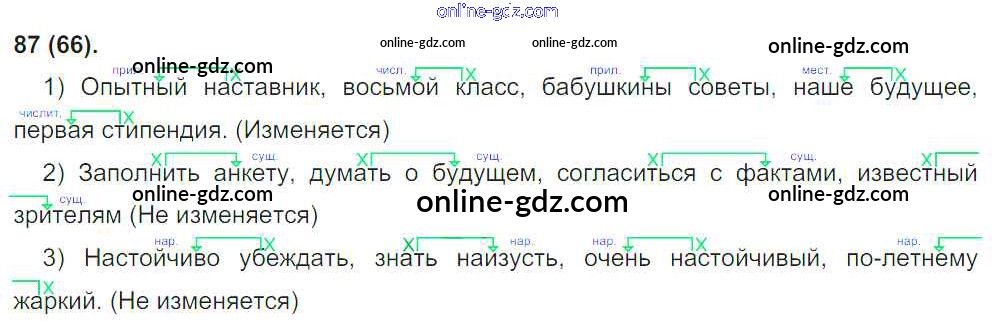 Готовые домашние задания по Русскому языку за 8 класс Учебник Бархударов, Крючков 2018 - Упражнения 87