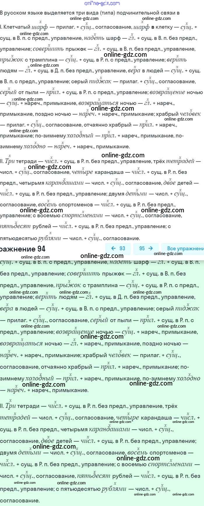 Готовые домашние задания по Русскому языку за 8 класс Учебник Бархударов, Крючков 2018 - Упражнения 94