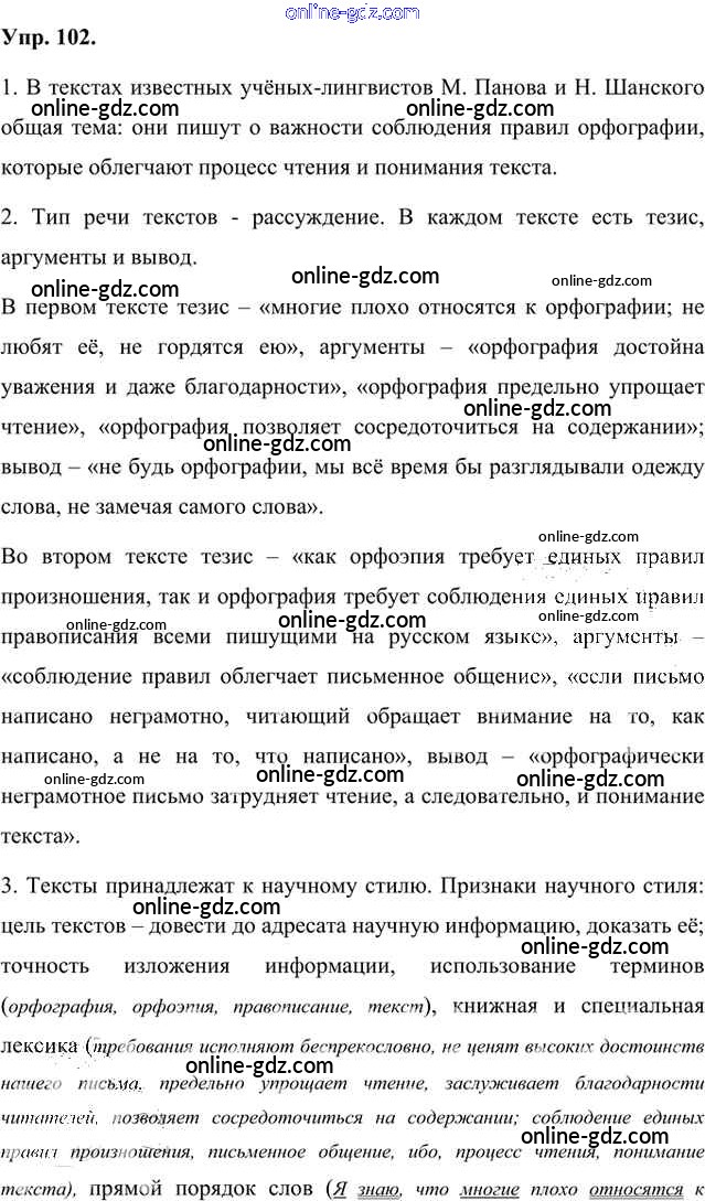 Готовые домашние задания по Русскому языку за 8 класс Учебник Быстрова, Кибирева Инновационная школа 2019 - Упражнения Часть 1 102