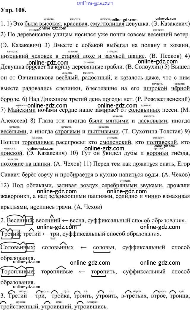 Готовые домашние задания по Русскому языку за 8 класс Учебник Быстрова, Кибирева Инновационная школа 2019 - Упражнения Часть 1 108