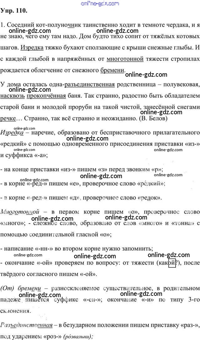 Готовые домашние задания по Русскому языку за 8 класс Учебник Быстрова, Кибирева Инновационная школа 2019 - Упражнения Часть 1 110