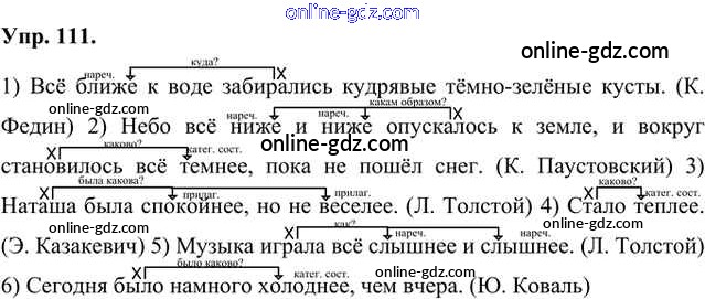 Готовые домашние задания по Русскому языку за 8 класс Учебник Быстрова, Кибирева Инновационная школа 2019 - Упражнения Часть 1 111