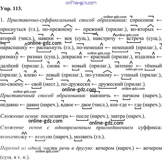 Готовые домашние задания по Русскому языку за 8 класс Учебник Быстрова, Кибирева Инновационная школа 2019 - Упражнения Часть 1 113