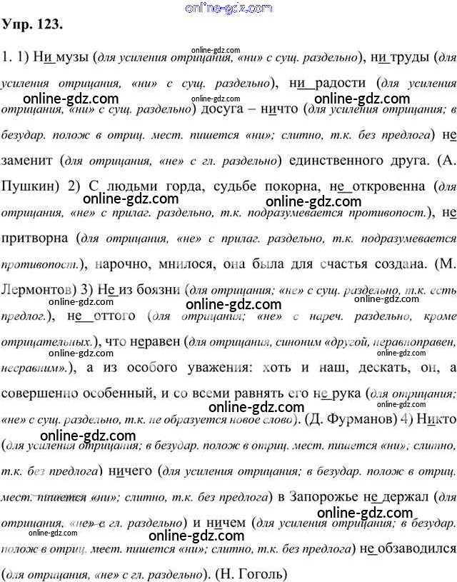 Готовые домашние задания по Русскому языку за 8 класс Учебник Быстрова, Кибирева Инновационная школа 2019 - Упражнения Часть 1 123