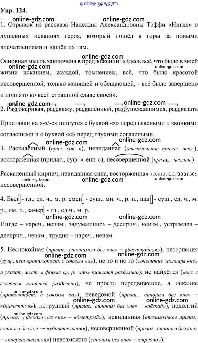 Готовые домашние задания по Русскому языку за 8 класс Учебник Быстрова, Кибирева Инновационная школа 2019 - Упражнения Часть 1 124
