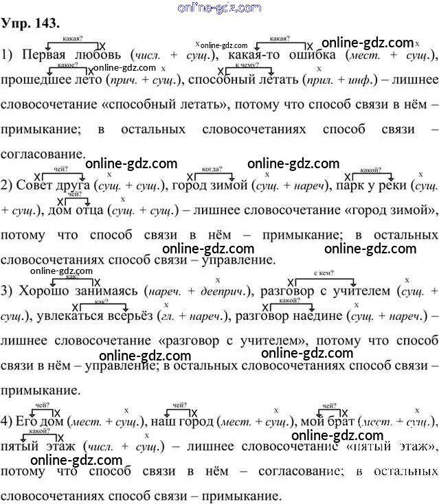 Готовые домашние задания по Русскому языку за 8 класс Учебник Быстрова, Кибирева Инновационная школа 2019 - Упражнения Часть 1 143