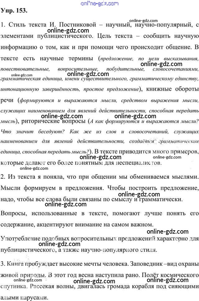Готовые домашние задания по Русскому языку за 8 класс Учебник Быстрова, Кибирева Инновационная школа 2019 - Упражнения Часть 1 153