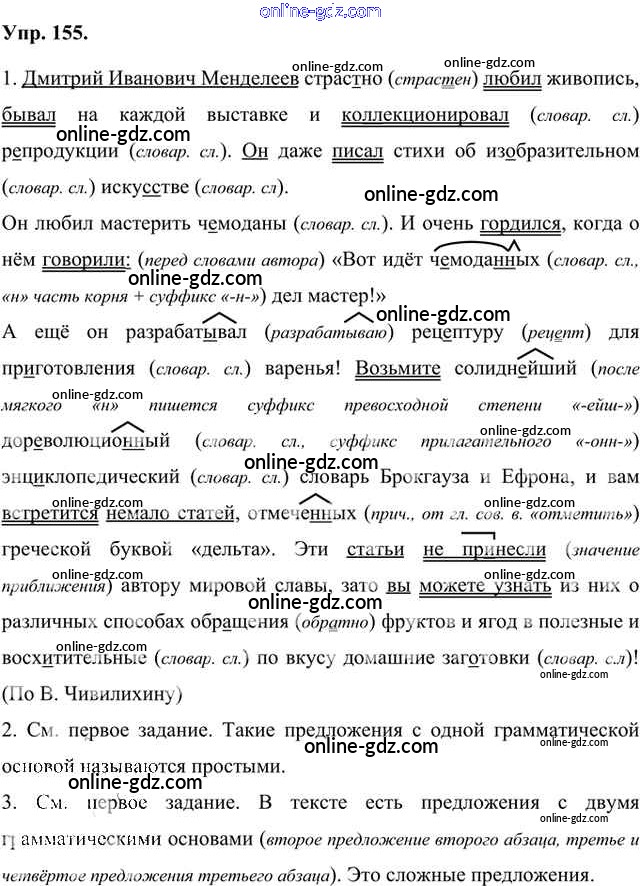 Готовые домашние задания по Русскому языку за 8 класс Учебник Быстрова, Кибирева Инновационная школа 2019 - Упражнения Часть 1 155