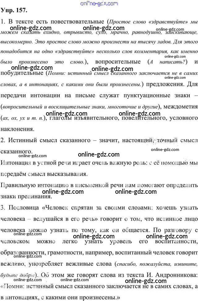 Готовые домашние задания по Русскому языку за 8 класс Учебник Быстрова, Кибирева Инновационная школа 2019 - Упражнения Часть 1 157