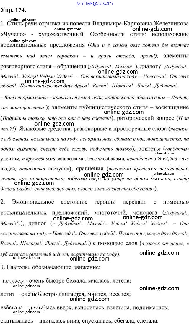 Готовые домашние задания по Русскому языку за 8 класс Учебник Быстрова, Кибирева Инновационная школа 2019 - Упражнения Часть 1 174