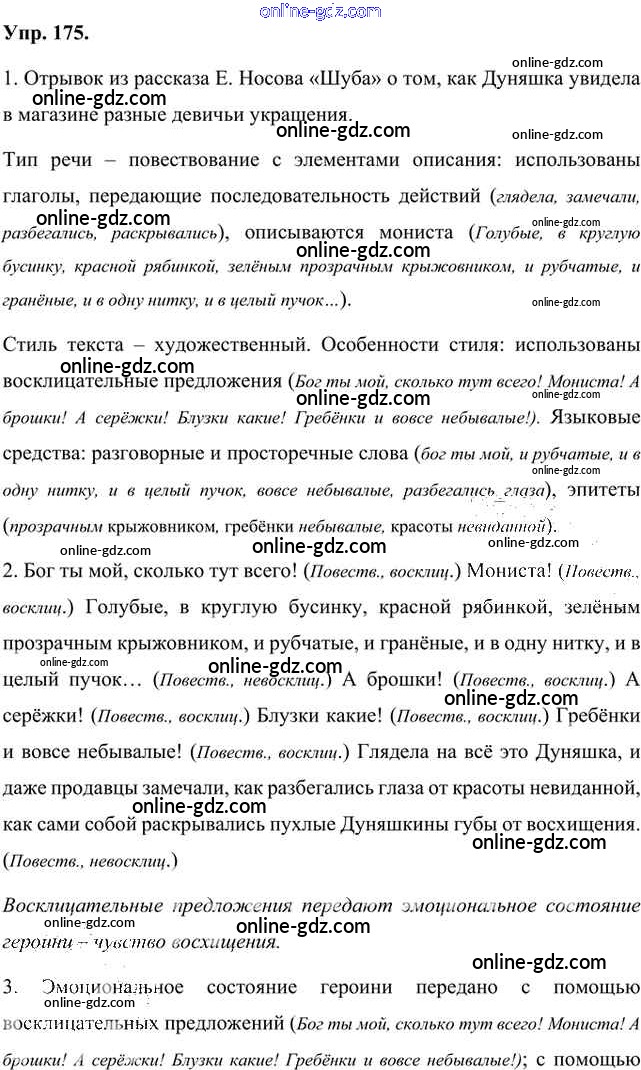 Готовые домашние задания по Русскому языку за 8 класс Учебник Быстрова, Кибирева Инновационная школа 2019 - Упражнения Часть 1 175