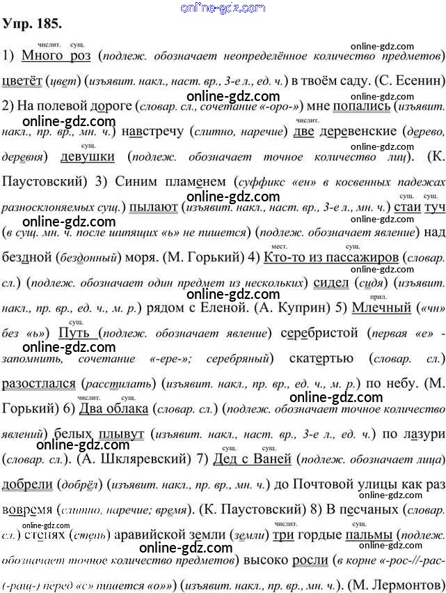 Готовые домашние задания по Русскому языку за 8 класс Учебник Быстрова, Кибирева Инновационная школа 2019 - Упражнения Часть 1 185