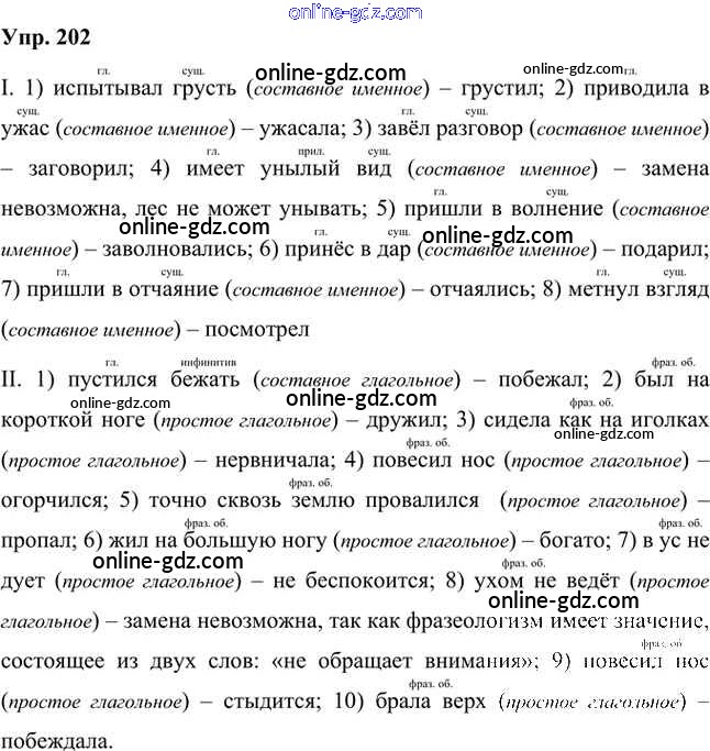 Готовые домашние задания по Русскому языку за 8 класс Учебник Быстрова, Кибирева Инновационная школа 2019 - Упражнения Часть 1 202