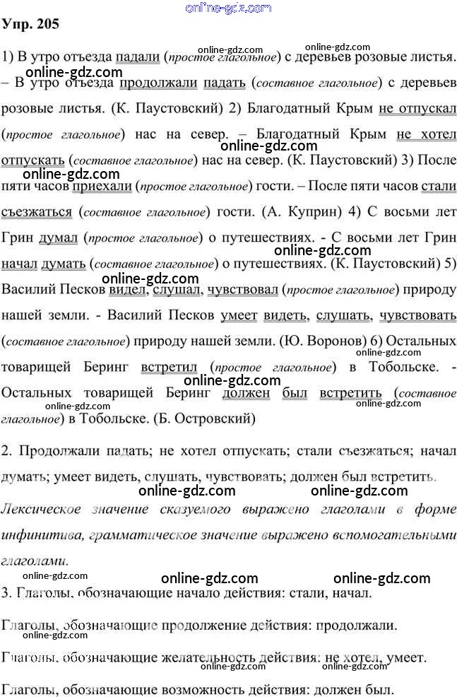 Готовые домашние задания по Русскому языку за 8 класс Учебник Быстрова, Кибирева Инновационная школа 2019 - Упражнения Часть 1 205