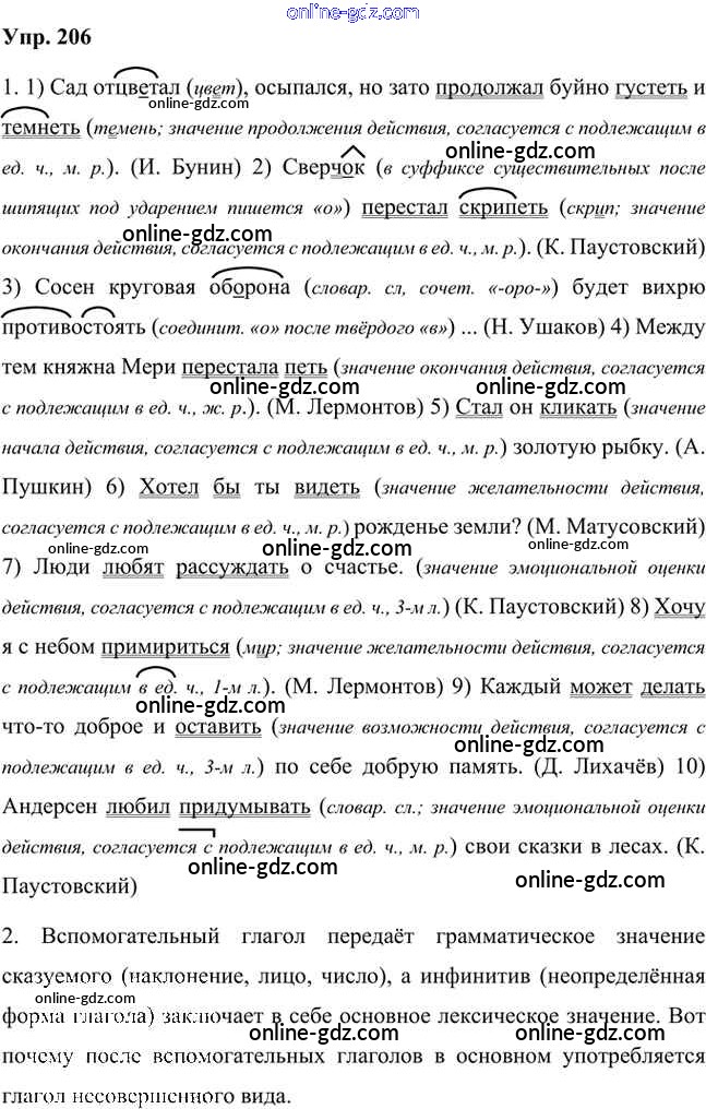 Готовые домашние задания по Русскому языку за 8 класс Учебник Быстрова, Кибирева Инновационная школа 2019 - Упражнения Часть 1 206