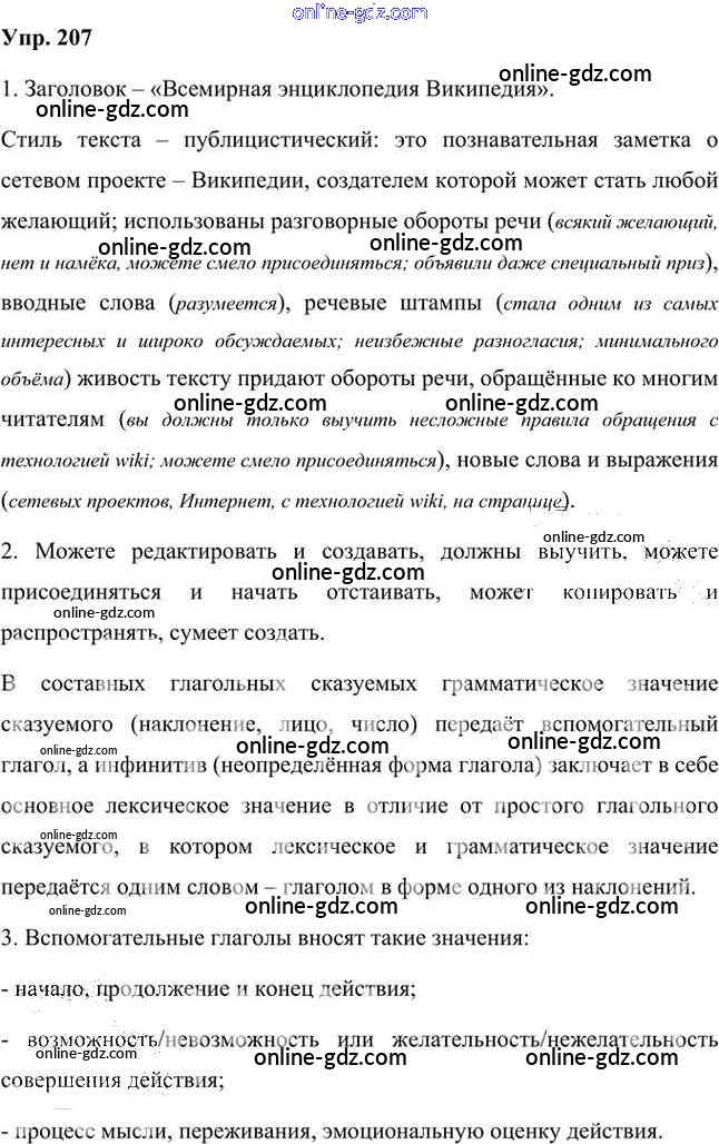Готовые домашние задания по Русскому языку за 8 класс Учебник Быстрова, Кибирева Инновационная школа 2019 - Упражнения Часть 1 207