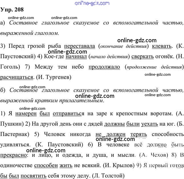 Готовые домашние задания по Русскому языку за 8 класс Учебник Быстрова, Кибирева Инновационная школа 2019 - Упражнения Часть 1 208