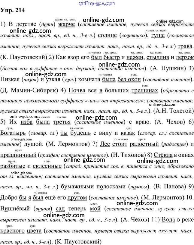 Готовые домашние задания по Русскому языку за 8 класс Учебник Быстрова, Кибирева Инновационная школа 2019 - Упражнения Часть 1 214