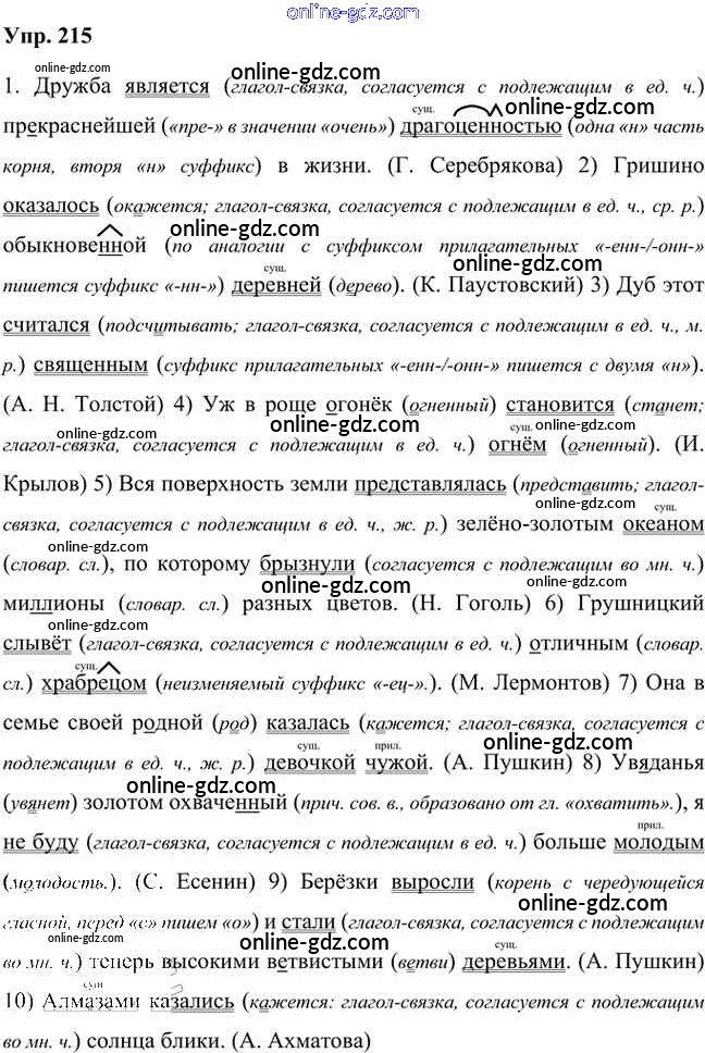 Готовые домашние задания по Русскому языку за 8 класс Учебник Быстрова, Кибирева Инновационная школа 2019 - Упражнения Часть 1 215