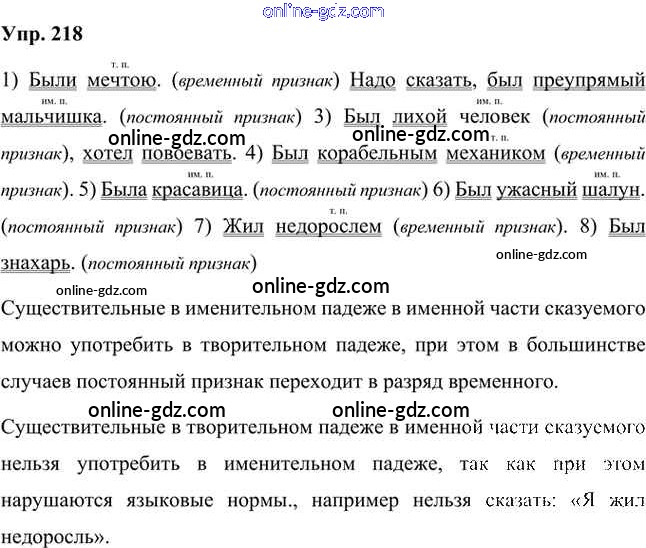 Готовые домашние задания по Русскому языку за 8 класс Учебник Быстрова, Кибирева Инновационная школа 2019 - Упражнения Часть 1 218