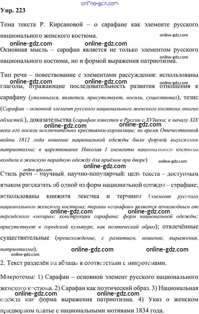 Готовые домашние задания по Русскому языку за 8 класс Учебник Быстрова, Кибирева Инновационная школа 2019 - Упражнения Часть 1 223