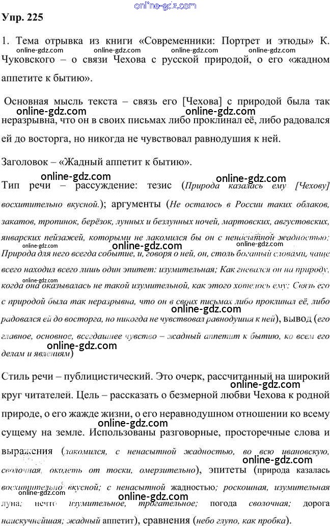 Готовые домашние задания по Русскому языку за 8 класс Учебник Быстрова, Кибирева Инновационная школа 2019 - Упражнения Часть 1 225