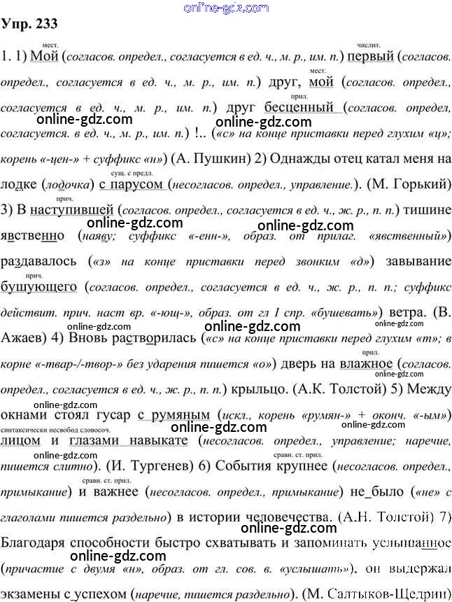 Готовые домашние задания по Русскому языку за 8 класс Учебник Быстрова, Кибирева Инновационная школа 2019 - Упражнения Часть 1 233