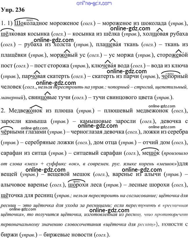 Готовые домашние задания по Русскому языку за 8 класс Учебник Быстрова, Кибирева Инновационная школа 2019 - Упражнения Часть 1 236