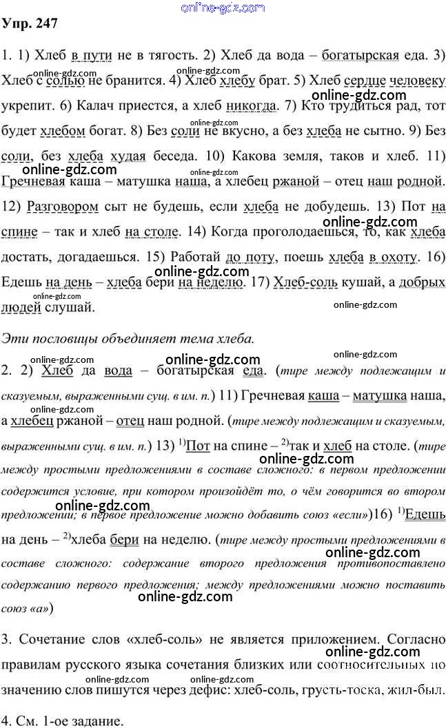 Готовые домашние задания по Русскому языку за 8 класс Учебник Быстрова, Кибирева Инновационная школа 2019 - Упражнения Часть 1 247