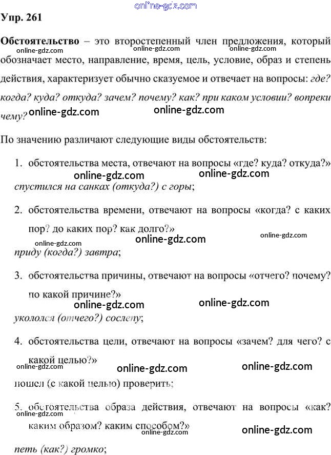 Готовые домашние задания по Русскому языку за 8 класс Учебник Быстрова, Кибирева Инновационная школа 2019 - Упражнения Часть 1 261