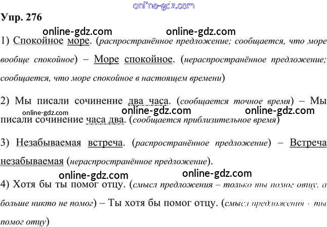 Готовые домашние задания по Русскому языку за 8 класс Учебник Быстрова, Кибирева Инновационная школа 2019 - Упражнения Часть 1 276