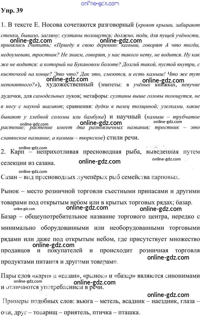 Готовые домашние задания по Русскому языку за 8 класс Учебник Быстрова, Кибирева Инновационная школа 2019 - Упражнения Часть 1 39