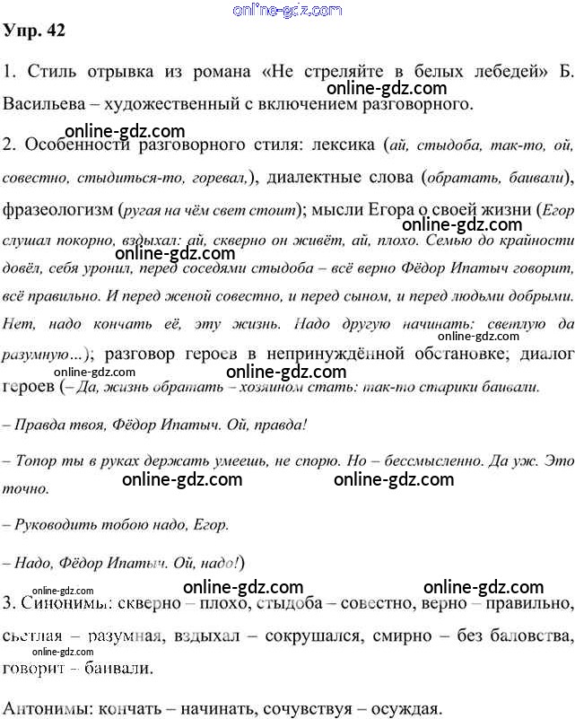 Готовые домашние задания по Русскому языку за 8 класс Учебник Быстрова, Кибирева Инновационная школа 2019 - Упражнения Часть 1 42